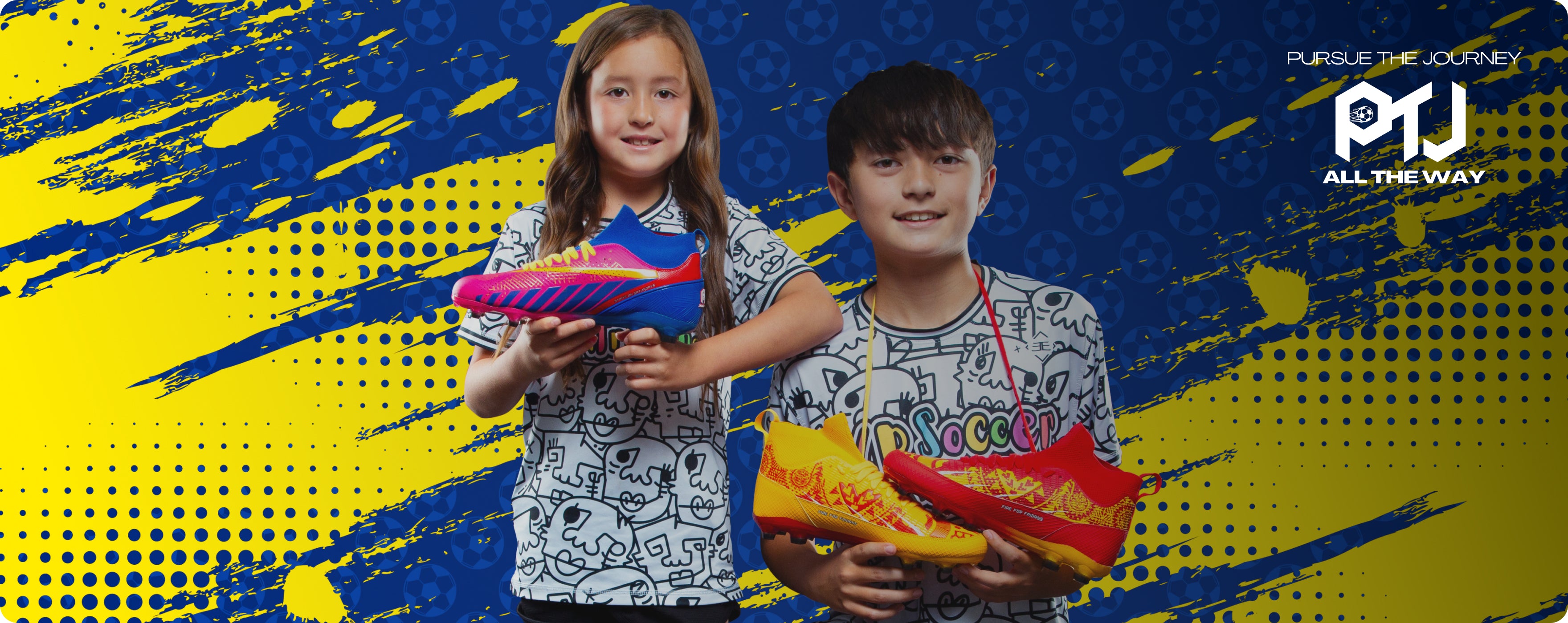 The PTJ soccer/football cleat is a perfect blend of elegance and performance. Its sleek black exterior exudes sophistication, while the gold accents to give you that extra flair on the pitch. Designed with premium materials, it offers exceptional comfort, durability, and a snug fit for enhanced ball control. The lightweight construction and strategically placed studs ensure maximum traction and agility on the field. Ideal for player who want to stand out and elevate their game, the PTJ cleats combines aesthetics and functionality, making it a must-have for competitive and recreational athletes alike.