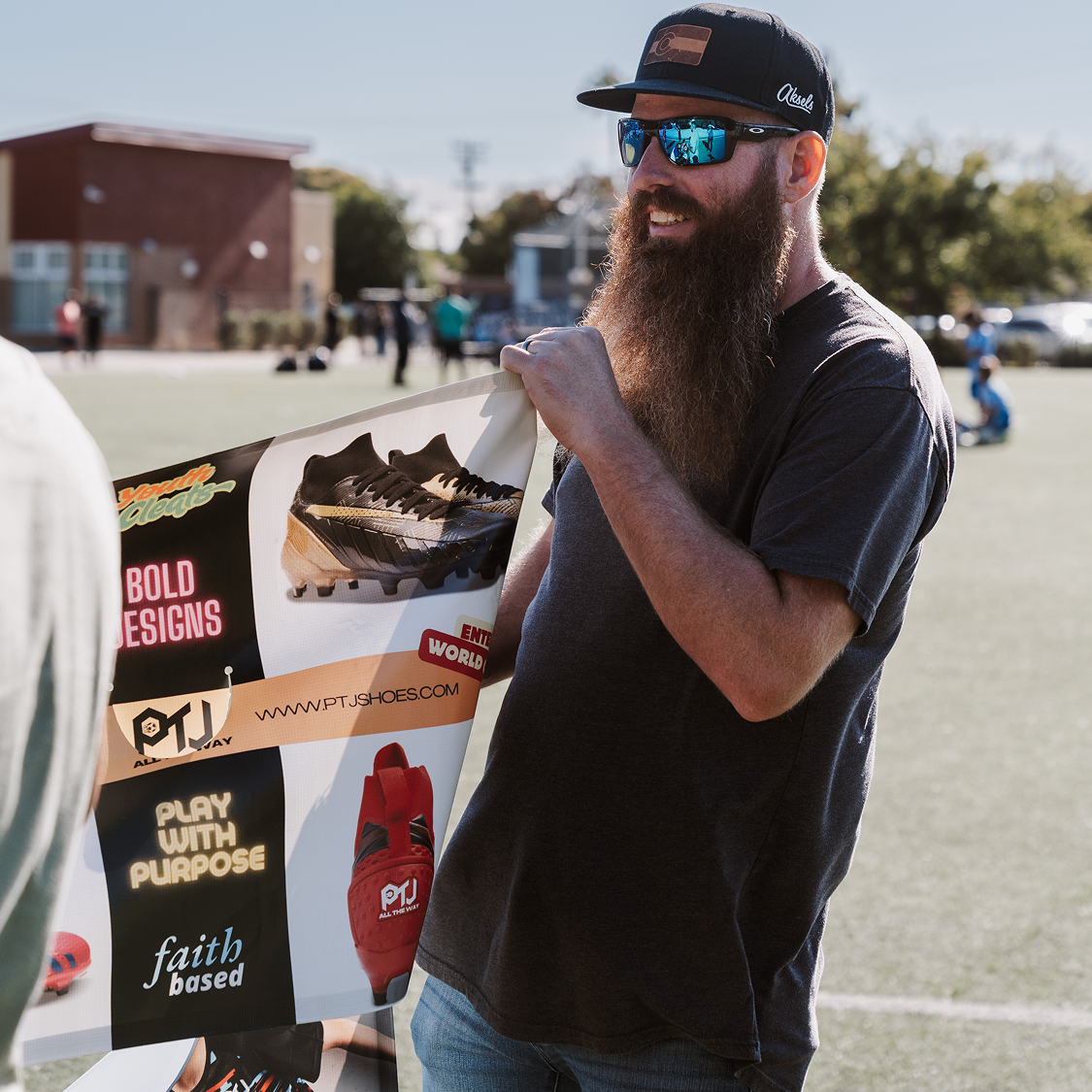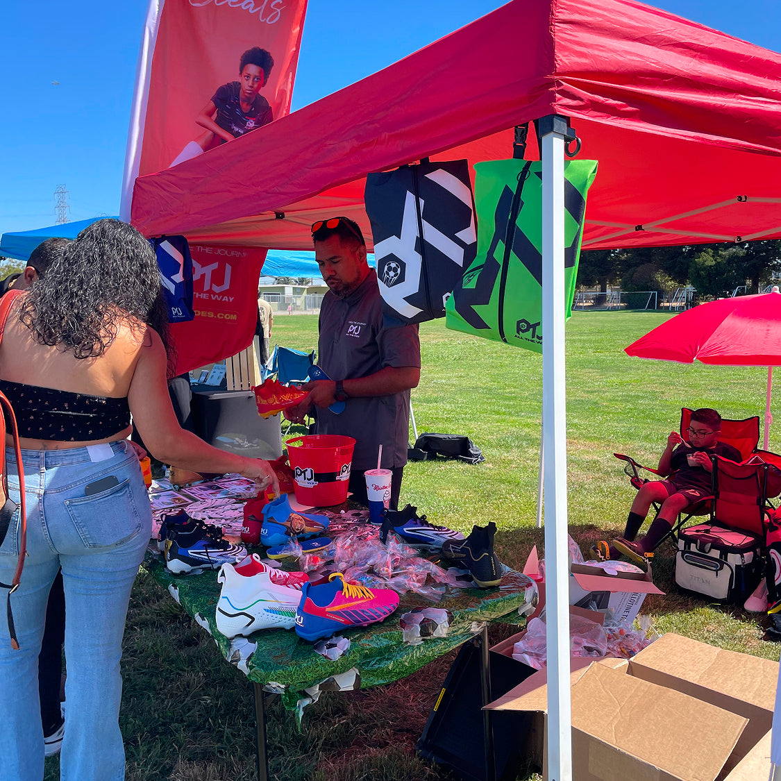 Beyond the introductions and team-building moments, the event featured a lively vendor area where families could explore products and resources to prepare for the season ahead. PTJ Shoes was thrilled to be among the featured vendors, bringing our lineup of high-performance youth soccer cleats directly to the players and parents who need them most. It was a unique opportunity for customers to see, touch, and try on our cleats in person — experiencing firsthand the craftsmanship, comfort, and style that set PTJ Shoes apart.